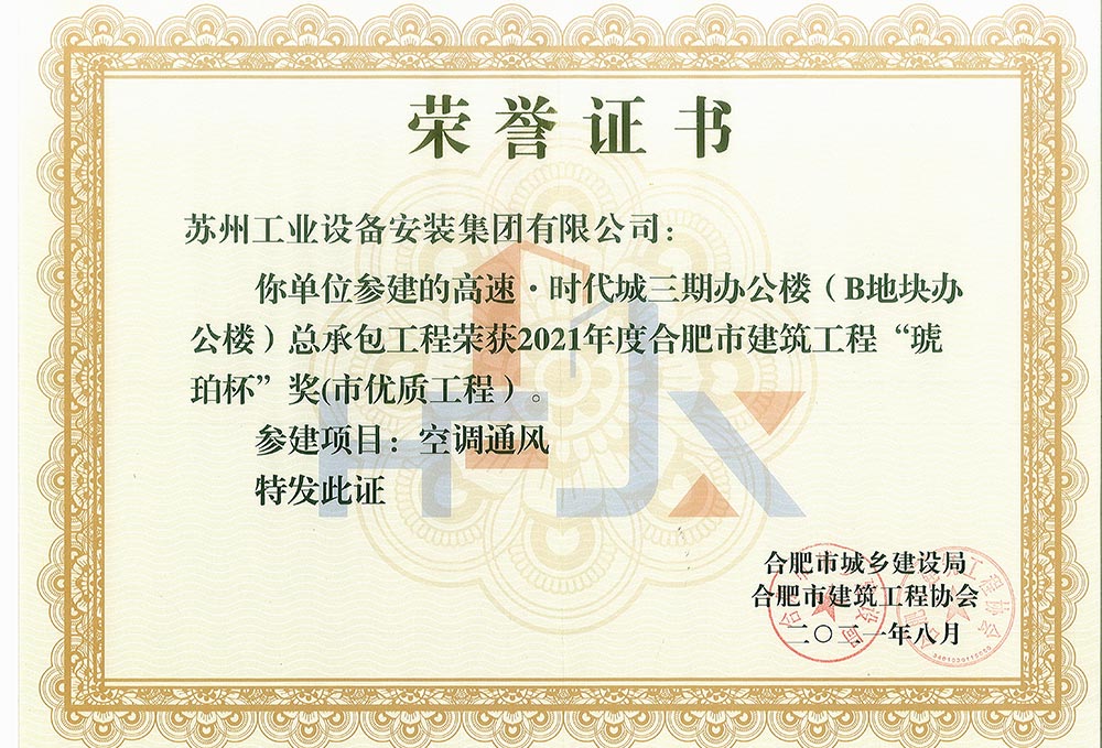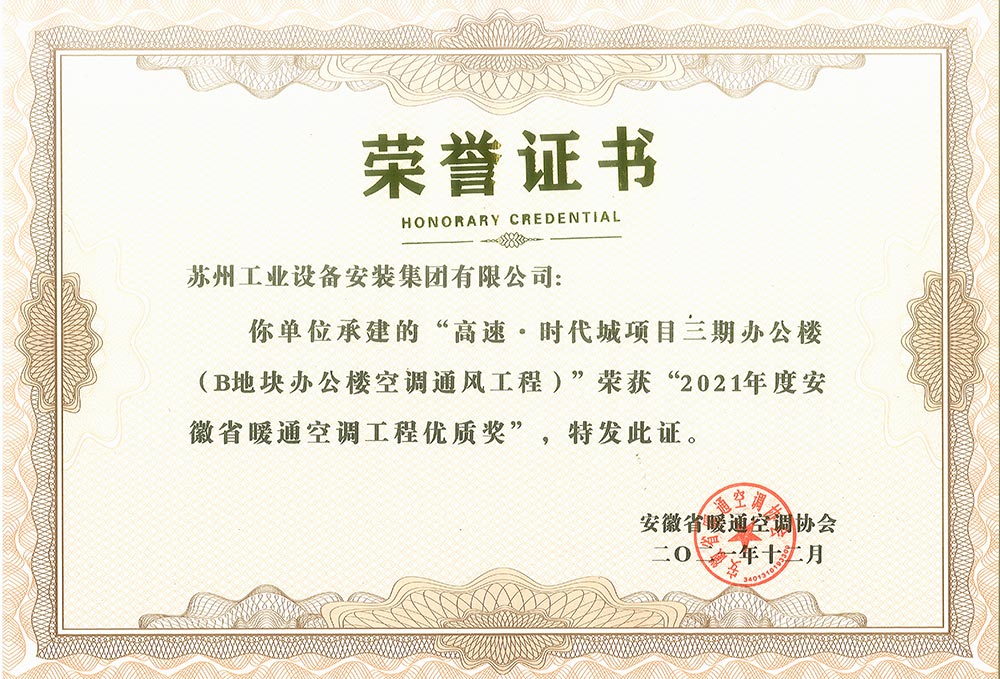 高速时代城三期办公楼2021年度安徽省暖通空调工程优质奖
