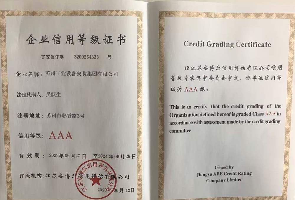 企业信用等级证书AAA